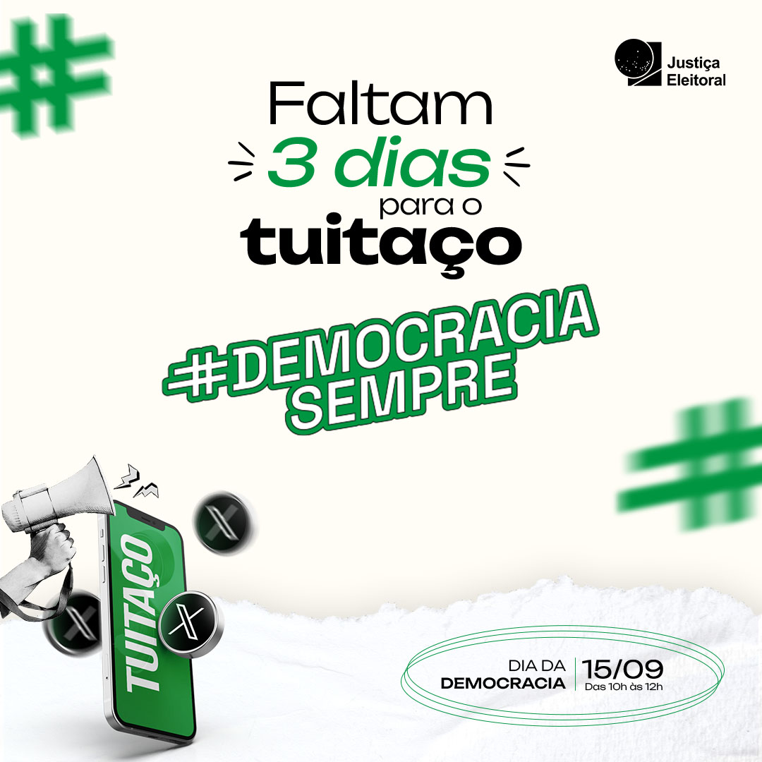 Na data em que se celebra o Dia Internacional da Democracia (15/9), a Justiça Eleitoral vai realizar uma grande mobilização digital na rede social X (Twitter), e a sua organização está convidada a participar dessa ação!