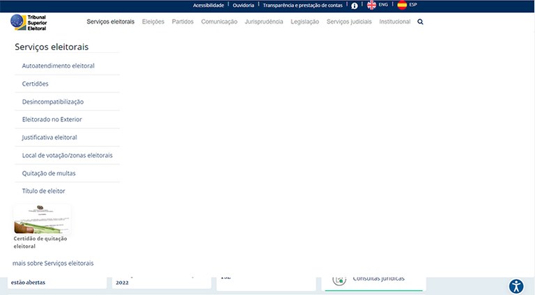 A consulta aos débitos eleitorais pode ser feita em poucos passos. A partir da página inicial do site do TSE, a usuária ou o usuário deve acessar a seção Serviços eleitorais e, em seguida, a opção Autoatendimento eleitoral.