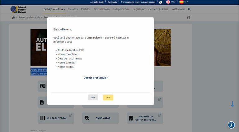 Depois, ao selecionar Multa Eleitoral, a eleitora ou o eleitor será direcionado para um serviço em que será necessário informar alguns dados pessoais.